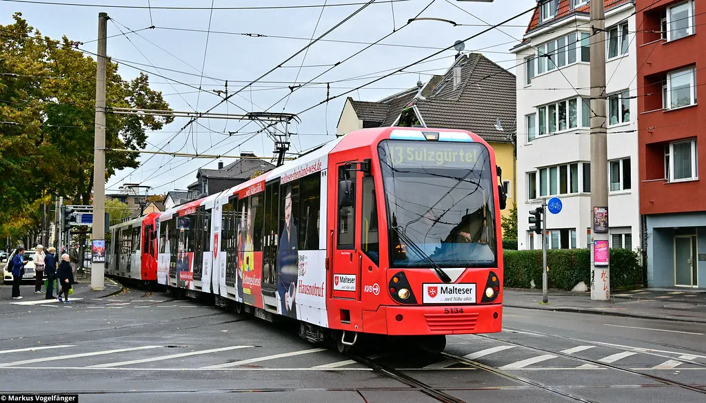 HF6 5328 während des 2000-km-Tests an der Haltestelle Kalker Friedhof am 16.10.2023.