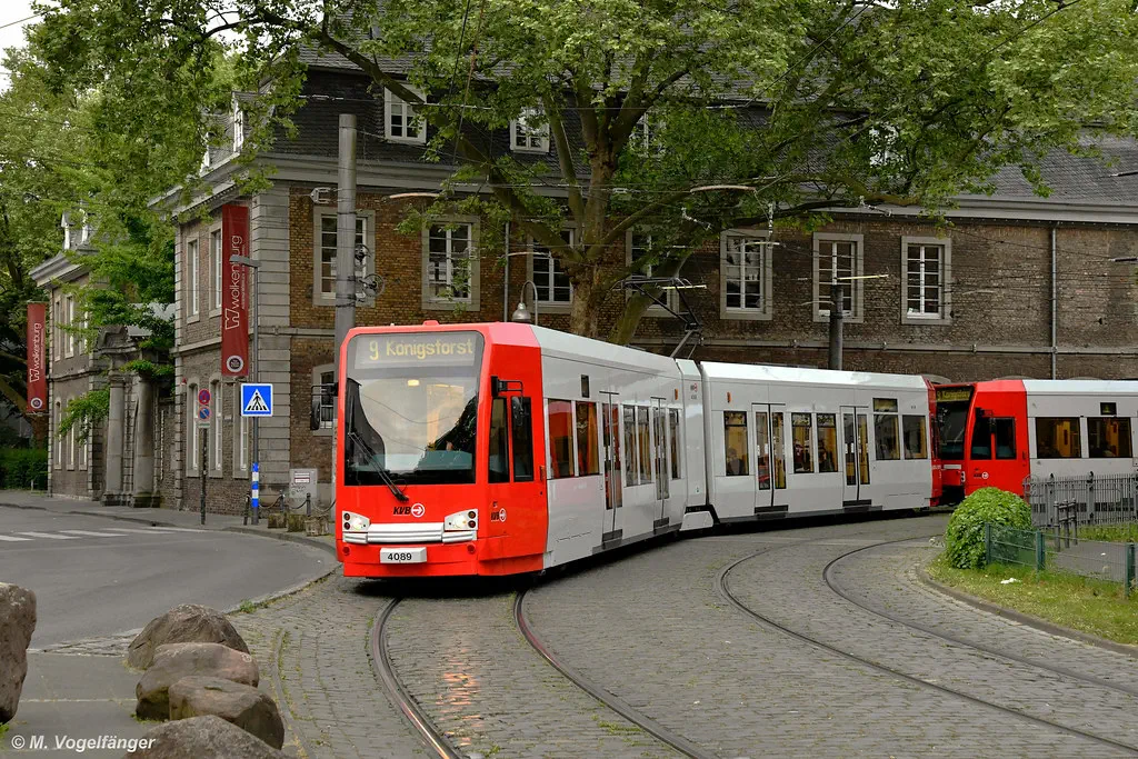 4089 wurde erneut in die aktuellen KVB-Farben lackiert. Hier zu sehen an der Mauritiuskirche am 10.05.2022..