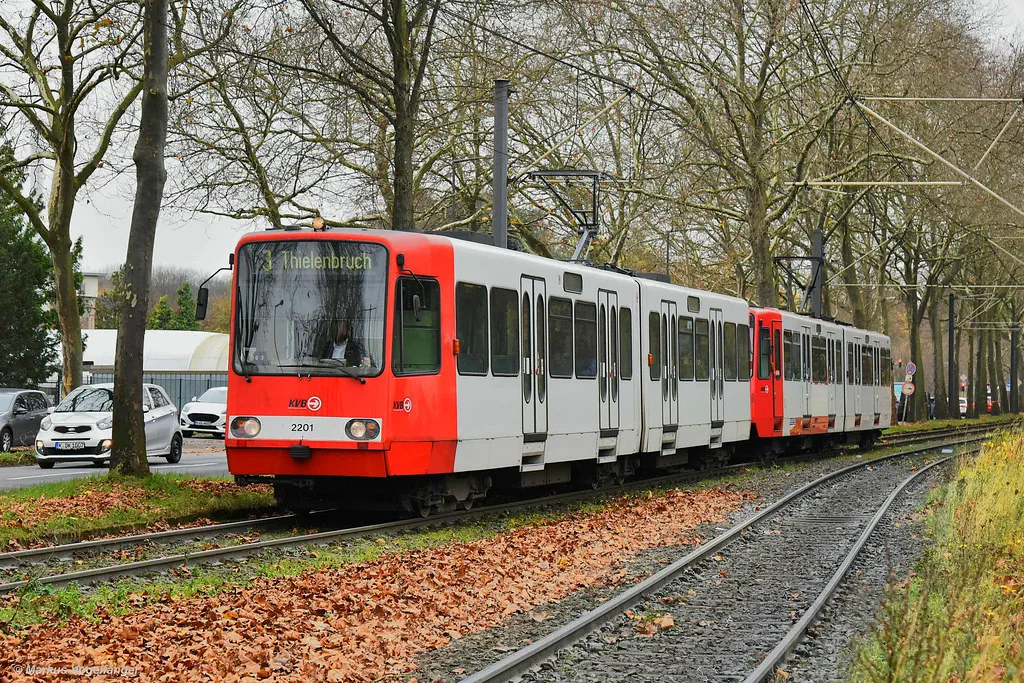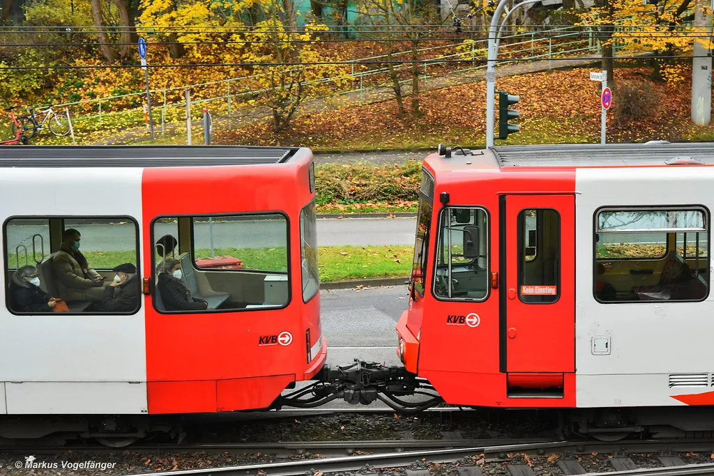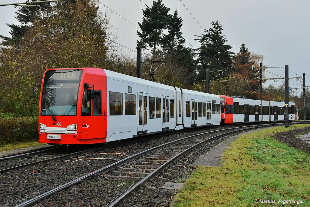 4065 wurde erneut in die aktuellen KVB-Farben lackiert. Hier zu sehen in Weiden am 23.11.2021.