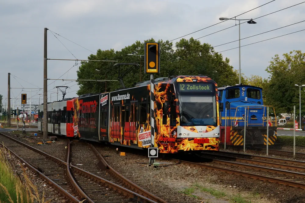 4529 auf einer zu erneuernden Gleiskreuzung auf der Emdener Straße am Ford Tor 8 zwischen den Haltestellen Fordwerke Mitte und Fordwerke Süd am 21.09.2013.