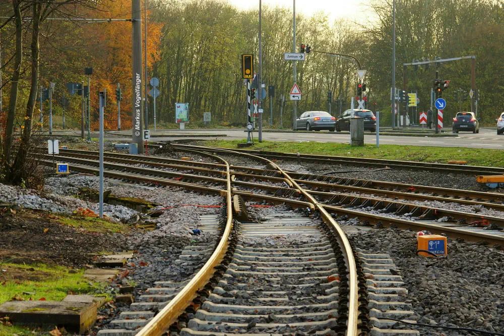 Die neuen Gleiskreuzungen auf der Emdener Straße.