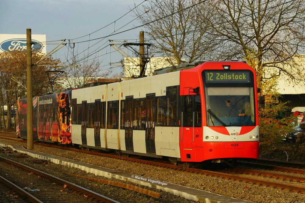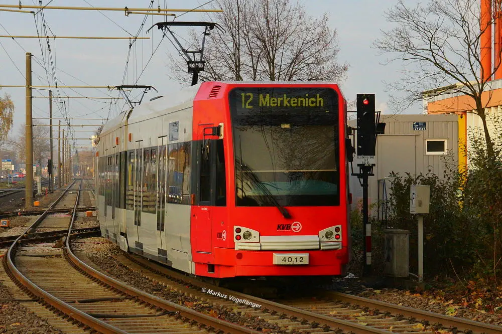 4038 als planmäßig ausrückender Kurs der Linie 15 in der Abstellanlage "Merkenich" am 25.10.2013.