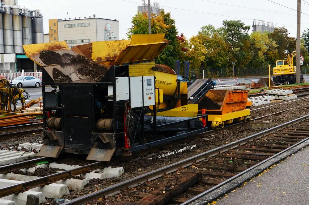 Die Schotterreinigungsmaschine am 19.10.2013.
