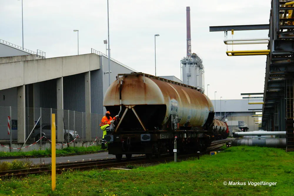 Ein Güterzug kurz vorm überqueren der Stadtbahngleise an der Haltestelle Fordwerke Nord am 19.10.2013.