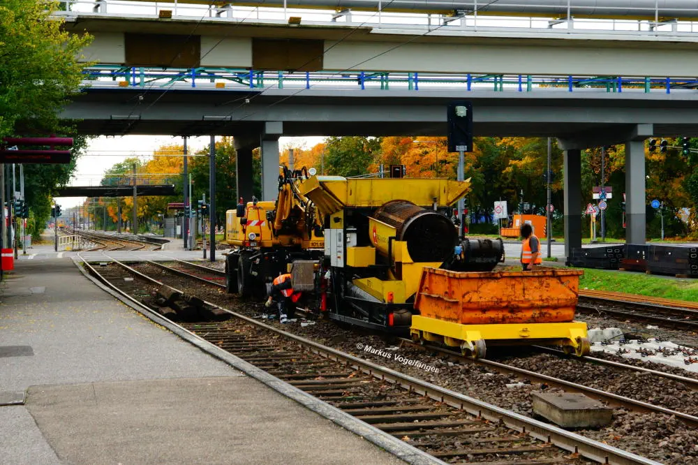 Die neue Weiche für Gleis 1 (ehemaliges Gleis 2, Mitte) und Gleis 2 (neues Gleis ganz links) wurde angeschlossen und die alte Weiche zwischen dem alten Gleis 1 (neues Regelwendegleis der Linie 12, rechts) und Gleis 1 (altes Gleis 2, Mitte) wurde ausgebaut.
