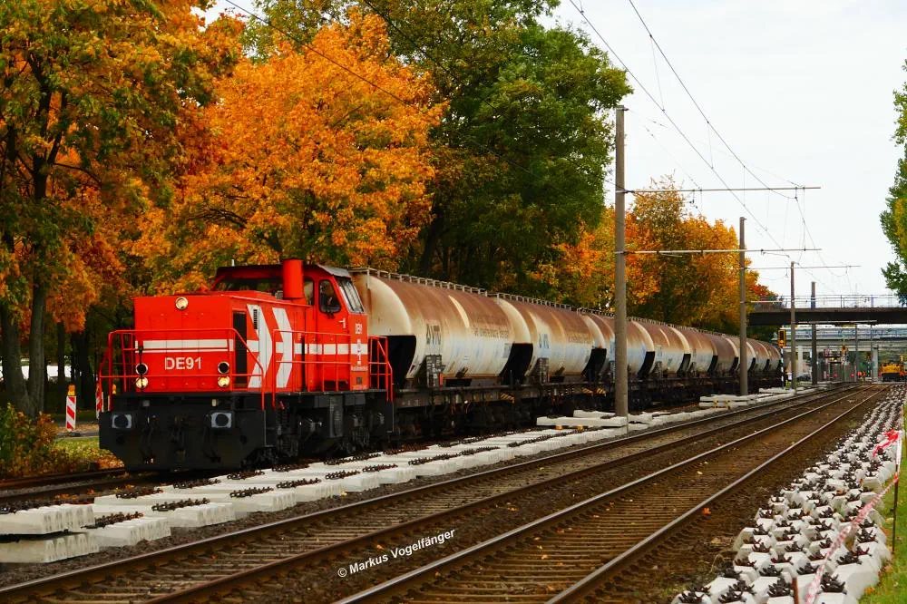 DE91 beim überqueren der Stadtbahngleise an der Haltestelle Fordwerke Nord am 19.10.2013.