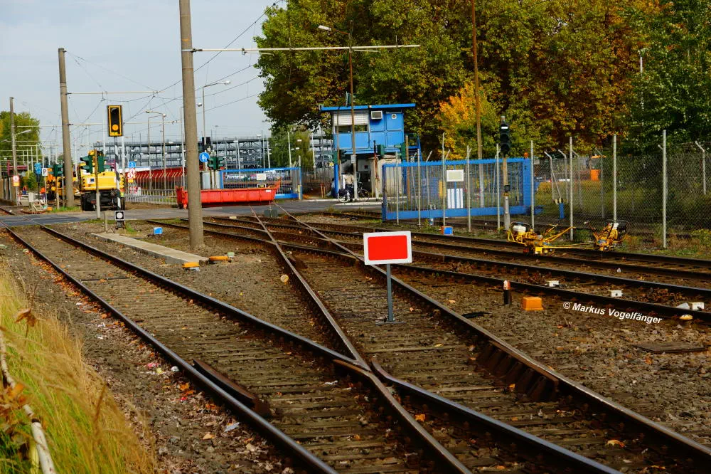 Das gesperrte Streckengleis Richtung Merkenich an der Haltestelle Niehl am 19.10.2013.
