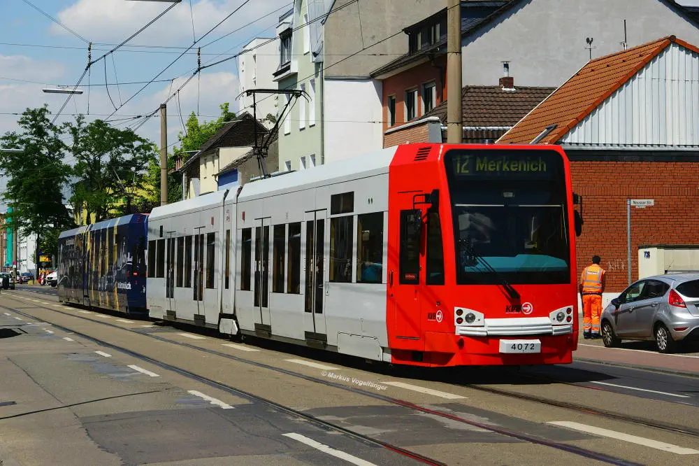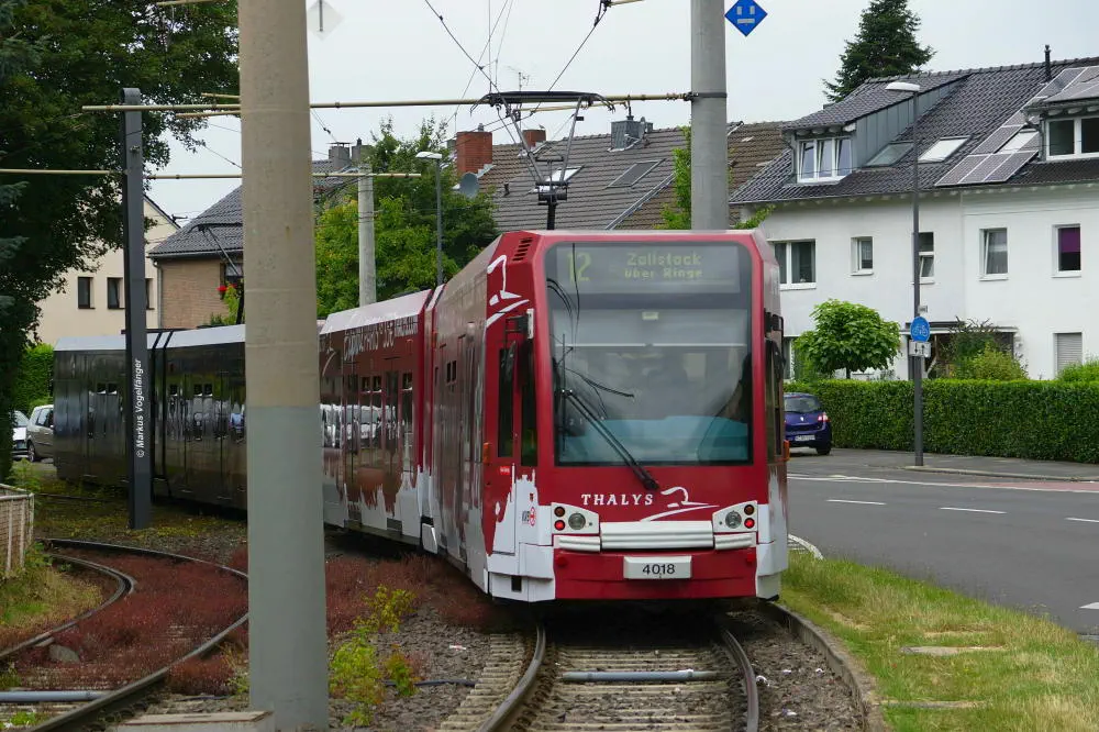 4018 als umgeleitete Linie 12 an der Haltestelle Longericher Straße während Bauphase 1 am 05.07.2014.