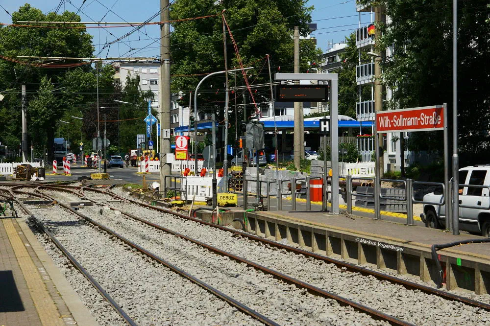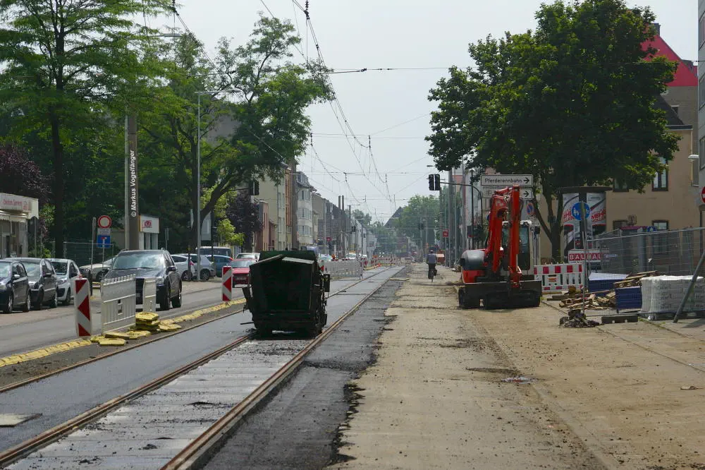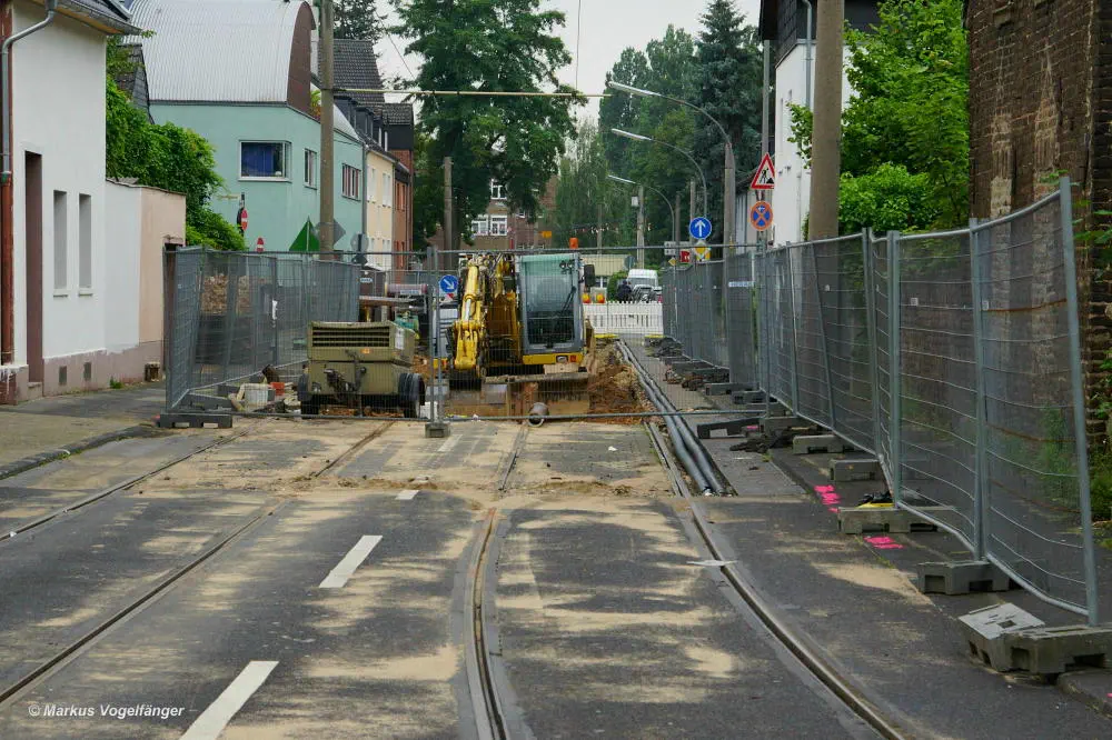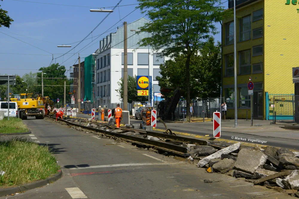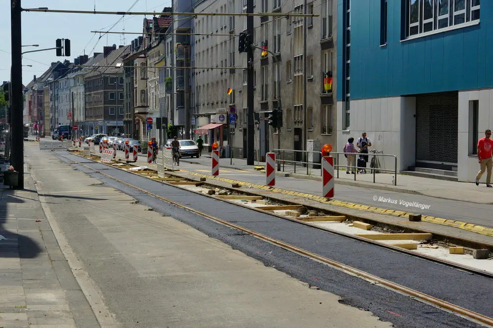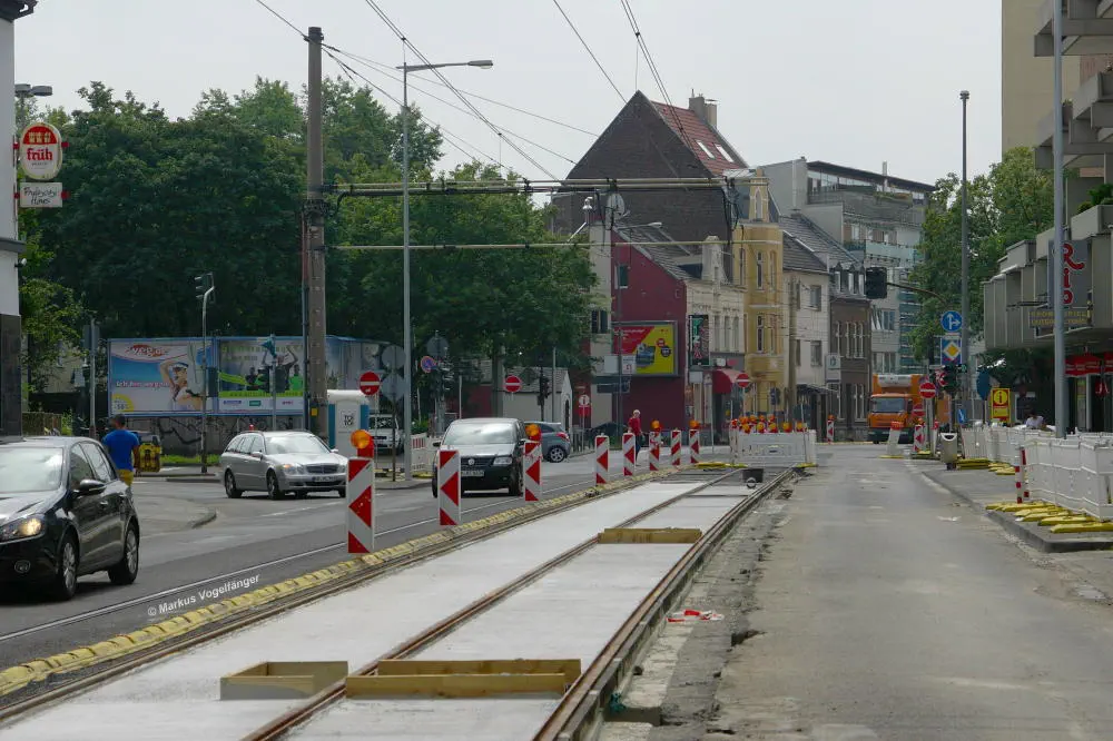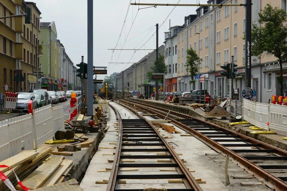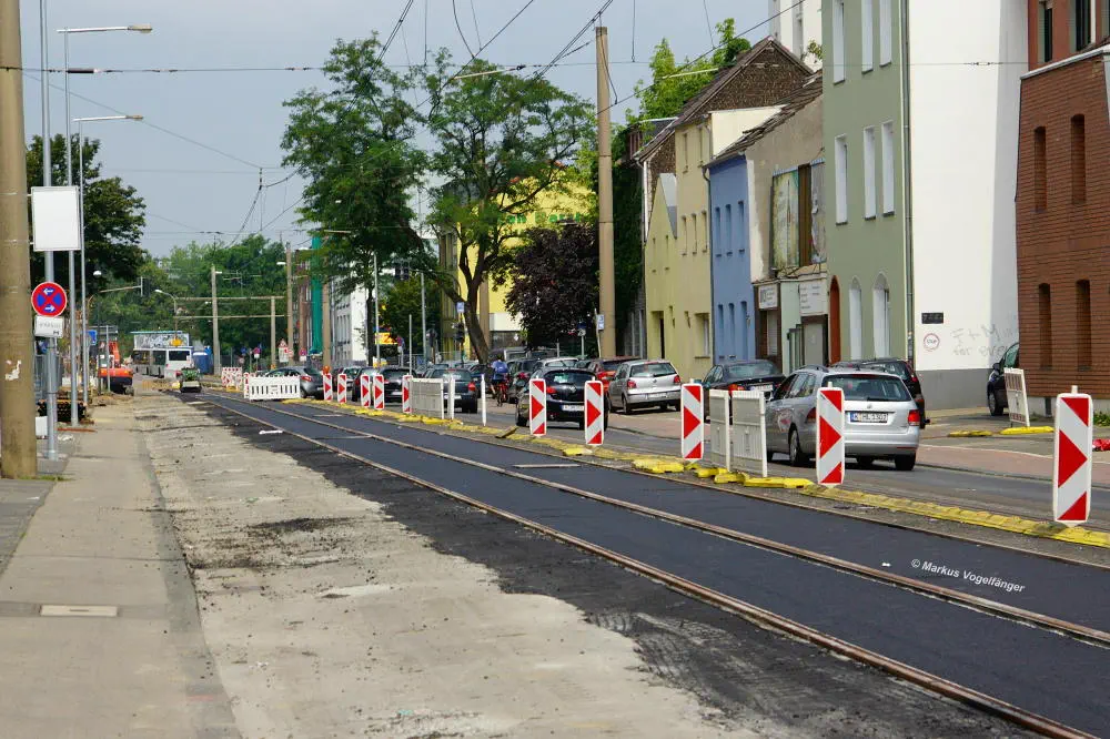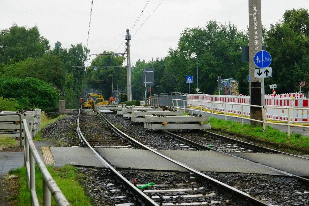 An der Haltestelle Wilhelm-Sollmann-Straße wurden die Gleise Richtung Innenstadt bereits entfernt. (07.07.2014)