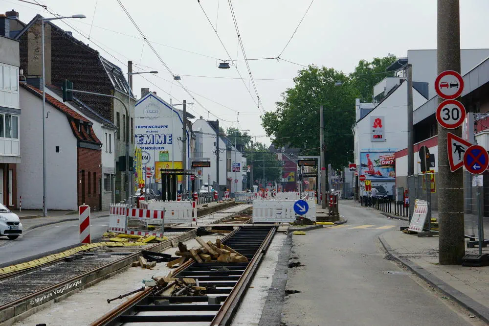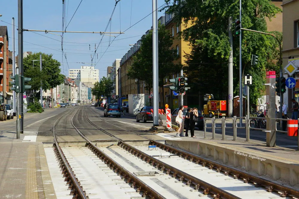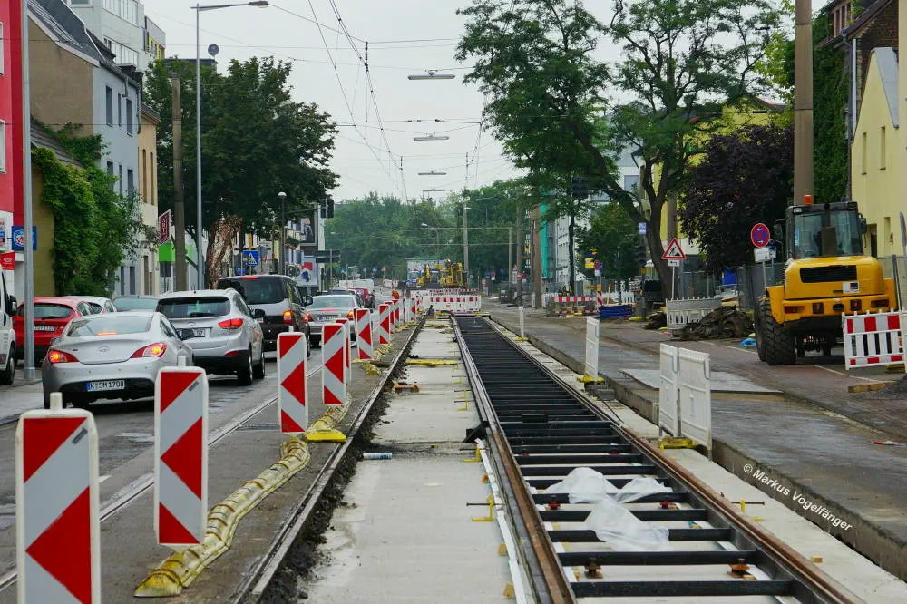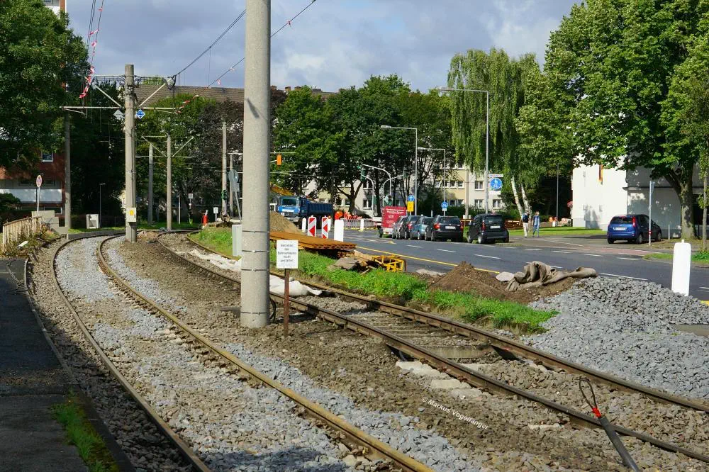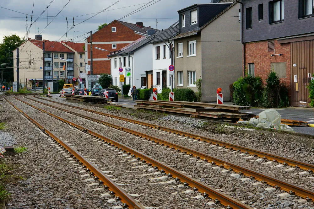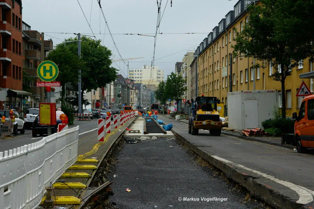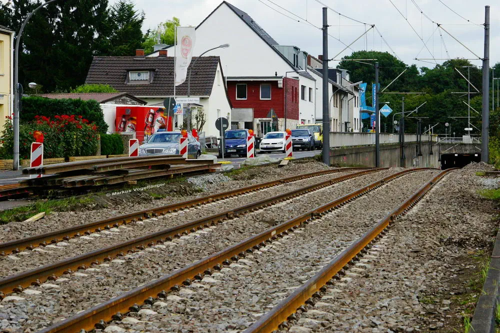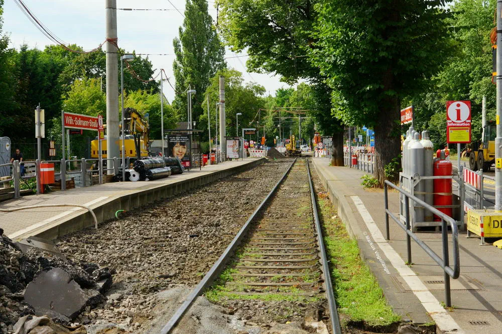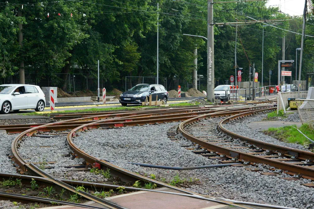An der Haltestelle Wilhelm-Sollmann-Straße wurden die Gleise Richtung Innenstadt bereits entfernt. (07.07.2014)