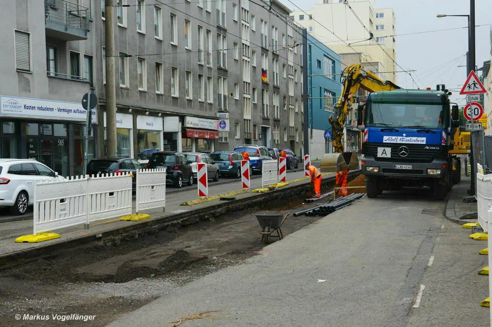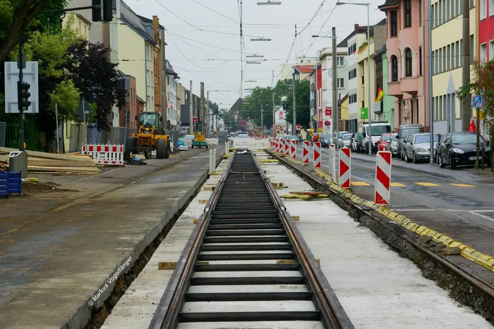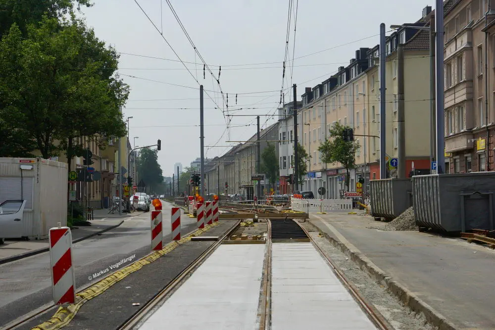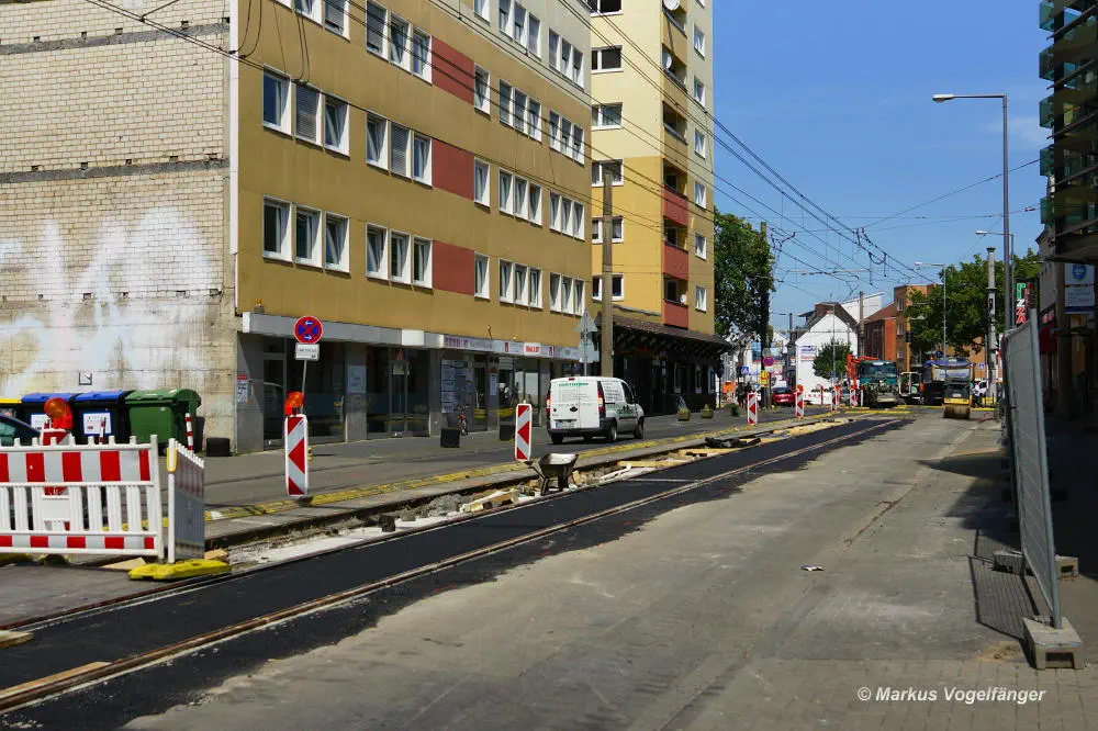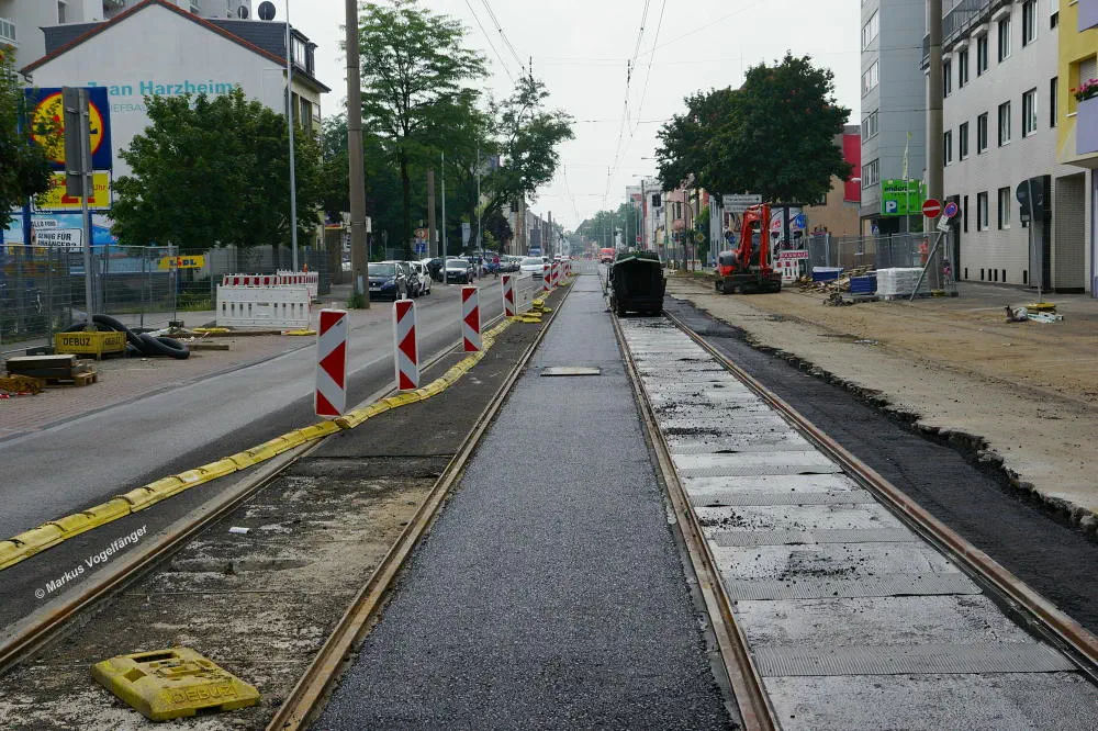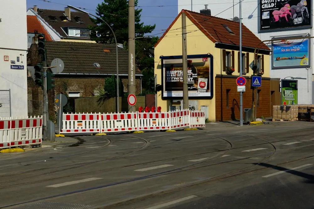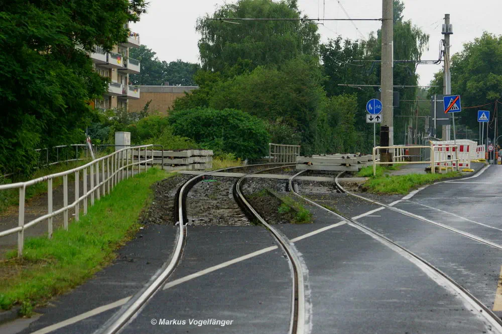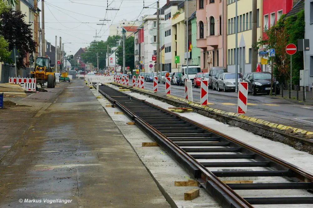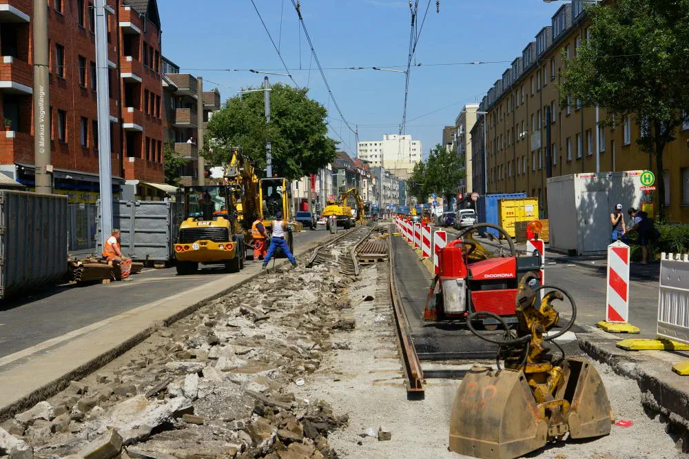 An der Haltestelle Wilhelm-Sollmann-Straße wurden die Gleise Richtung Innenstadt bereits entfernt. (07.07.2014)