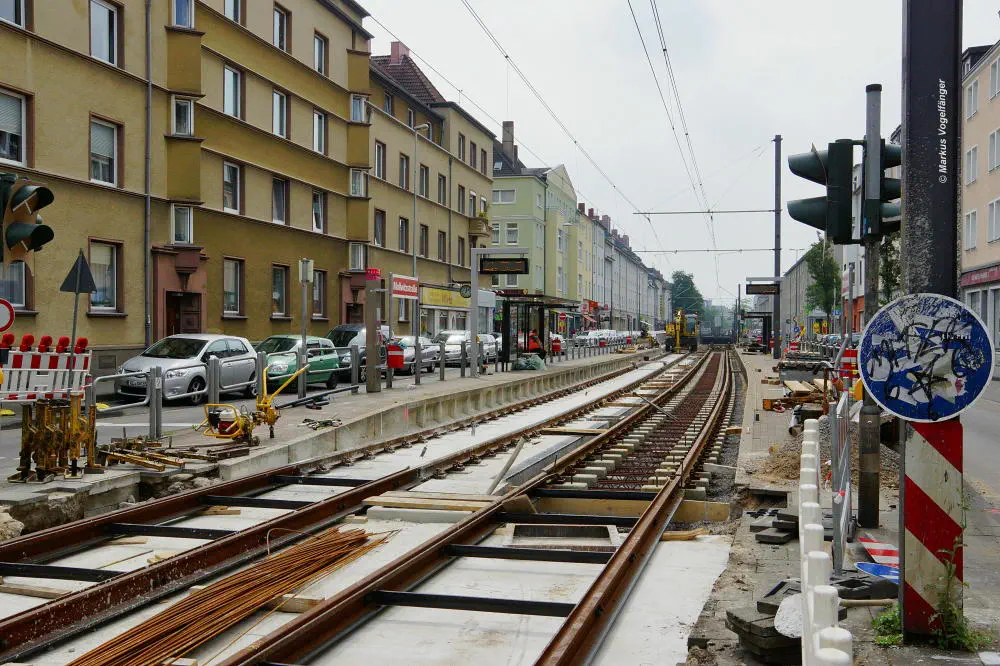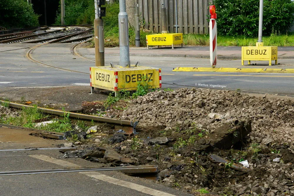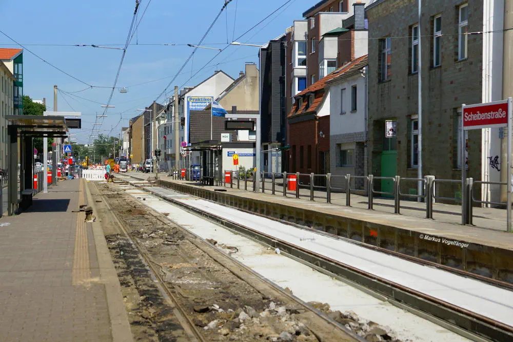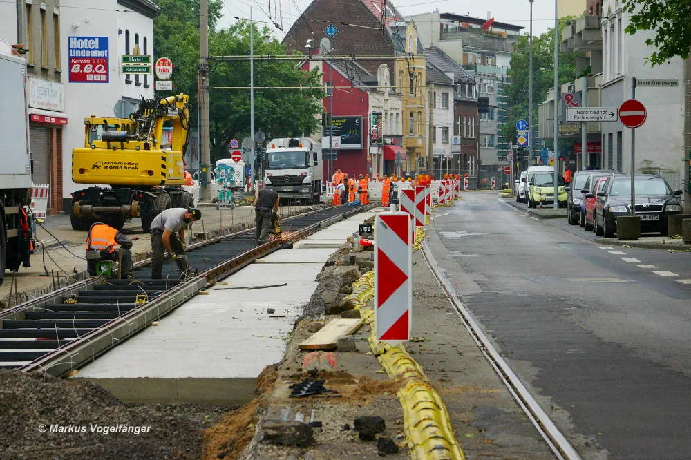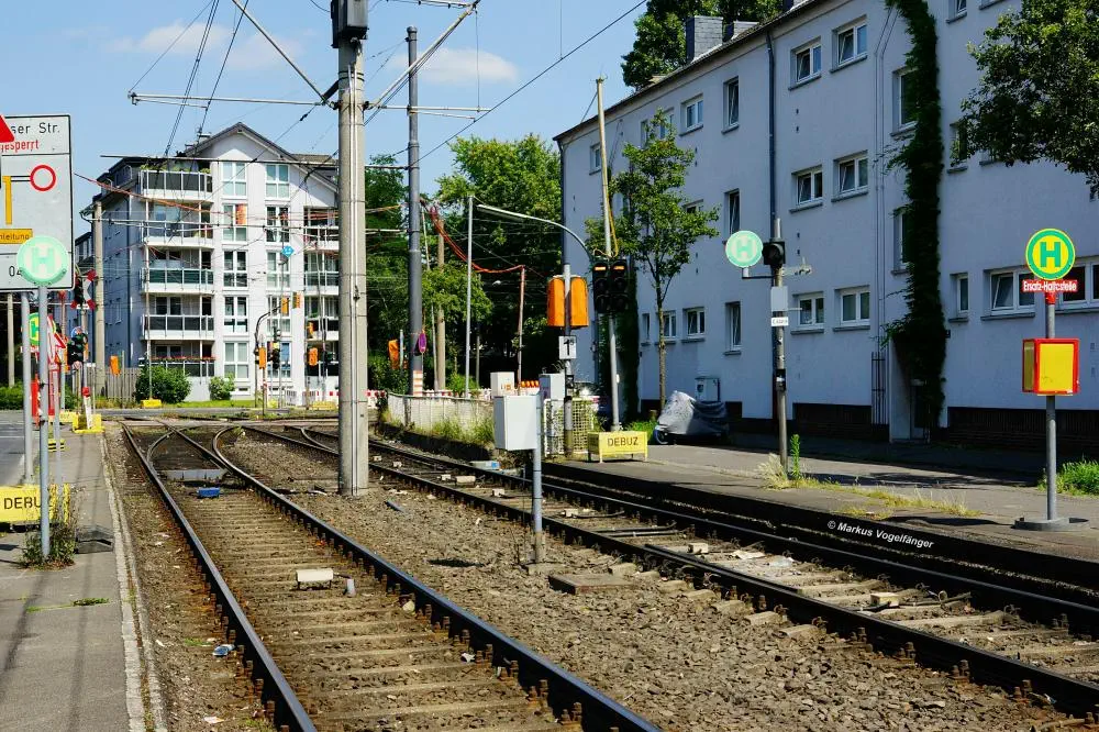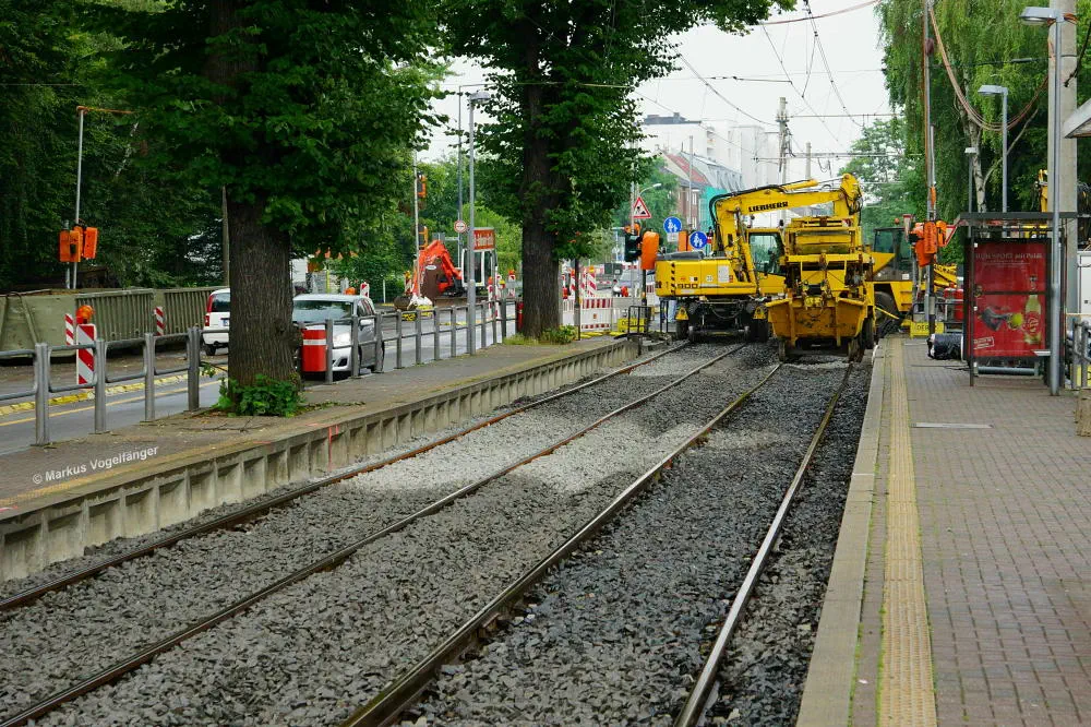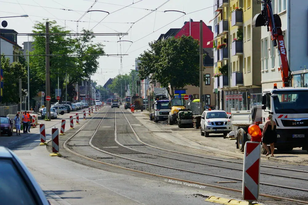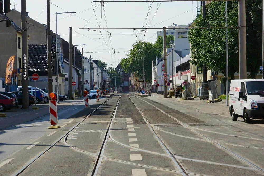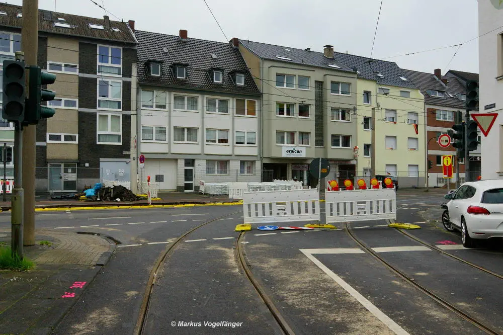 An der Haltestelle Wilhelm-Sollmann-Straße wurden die Gleise Richtung Innenstadt bereits entfernt. (07.07.2014)