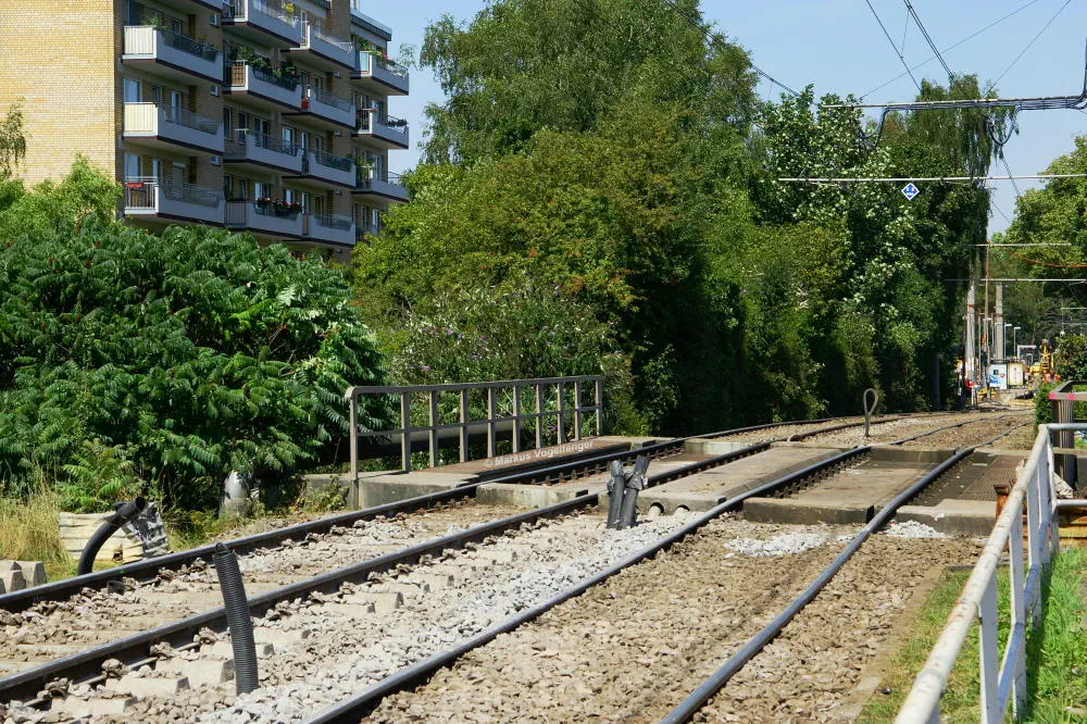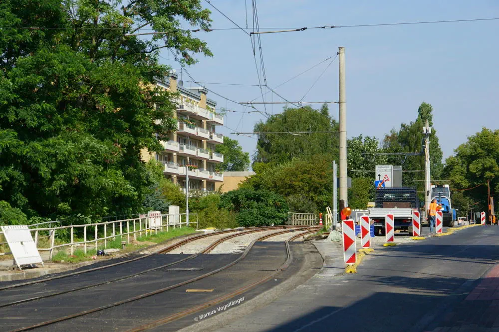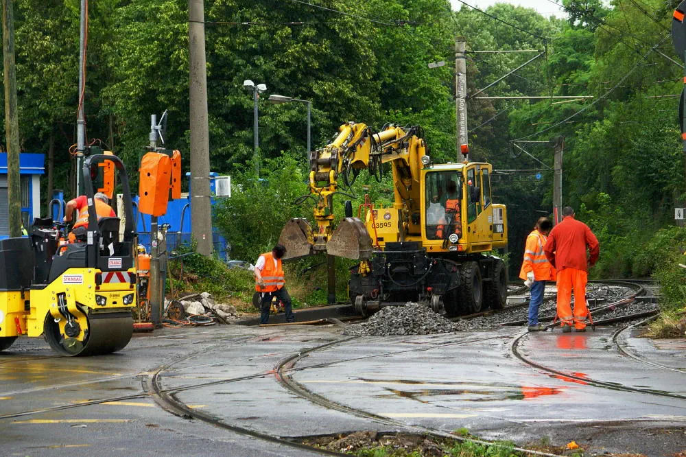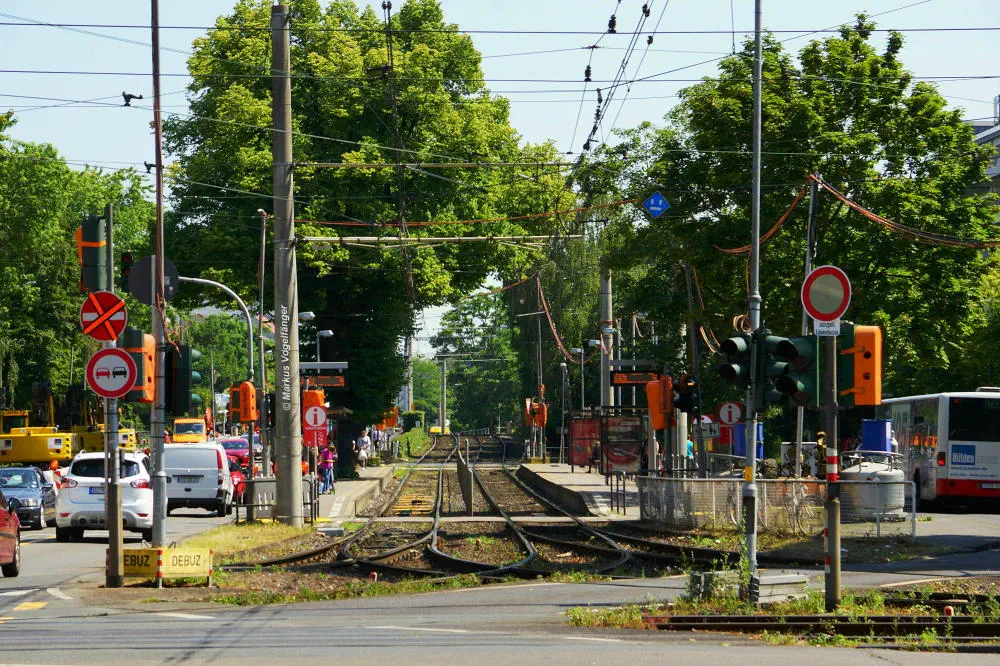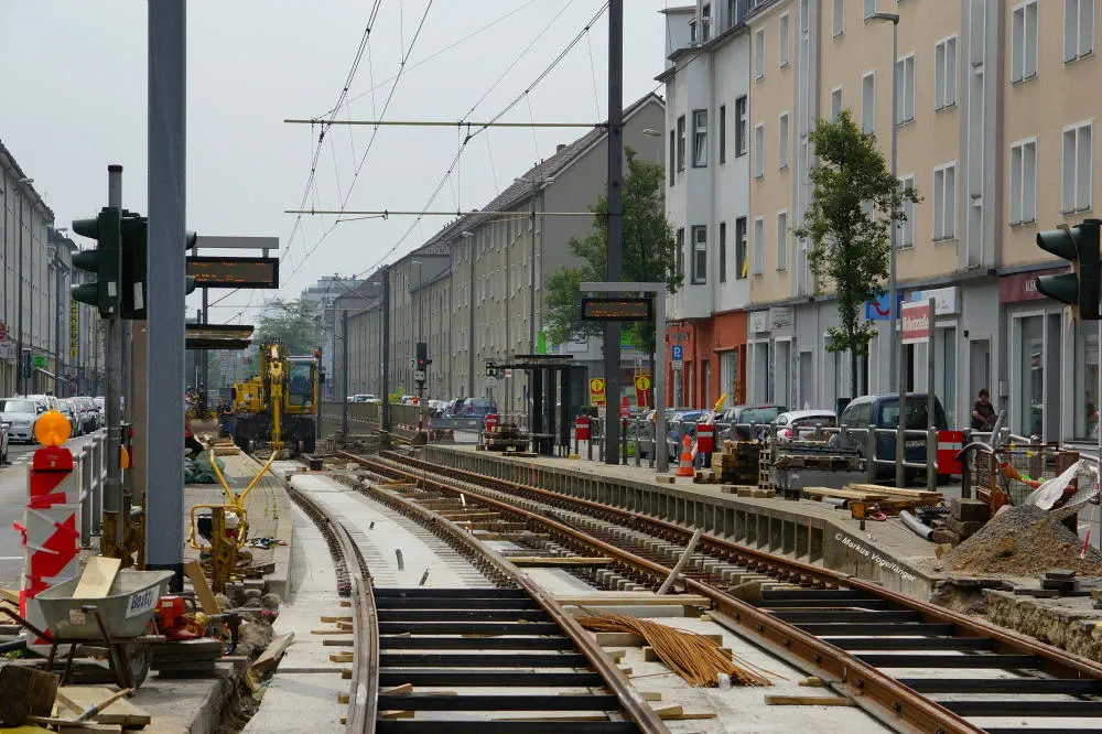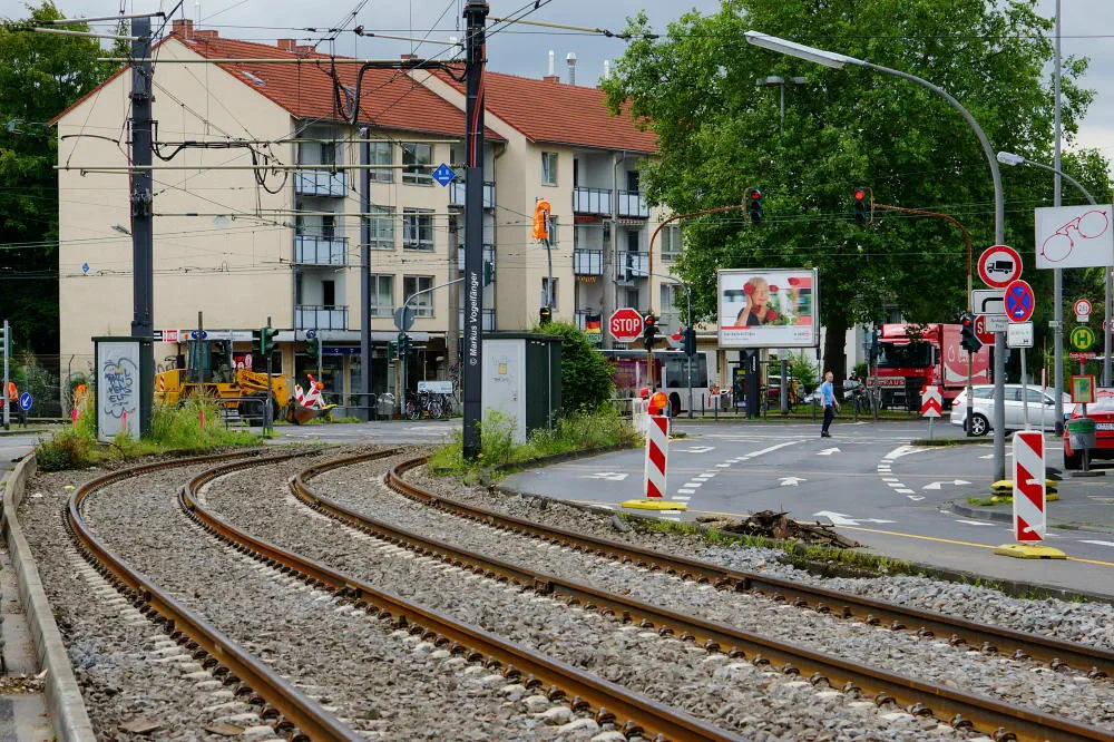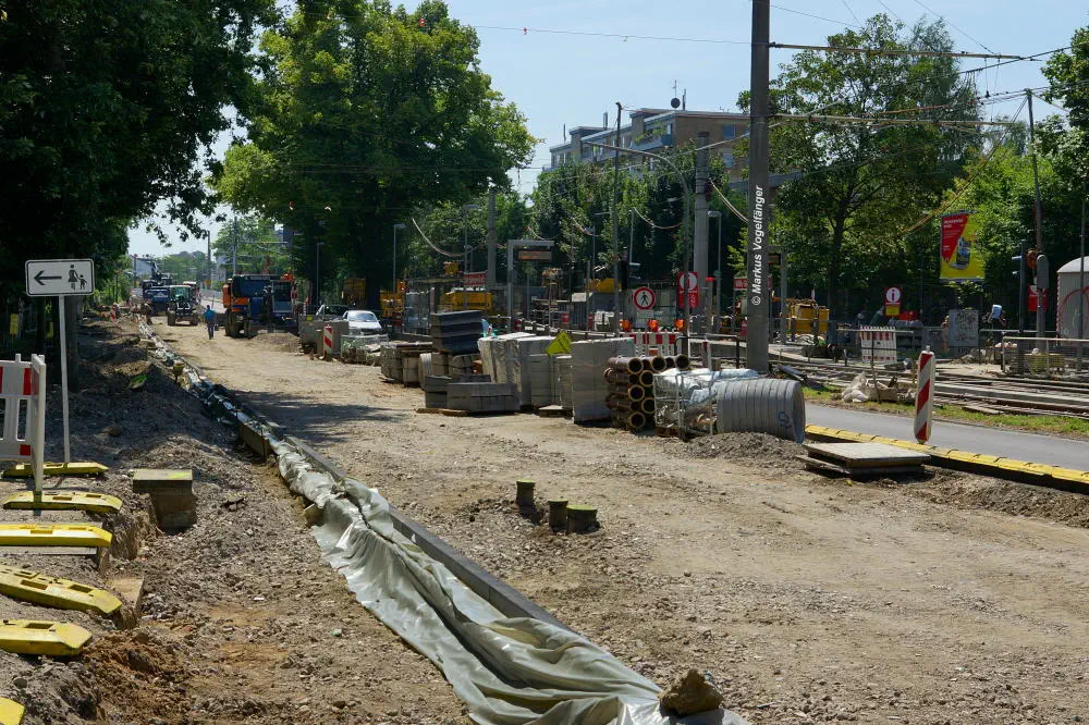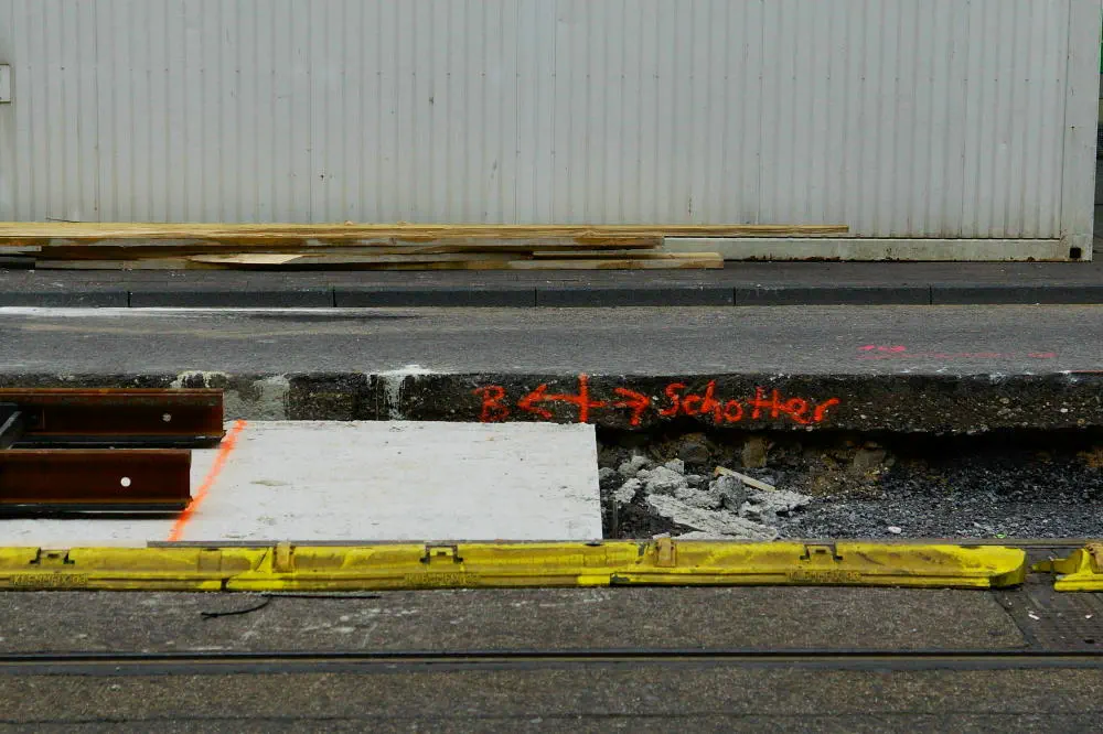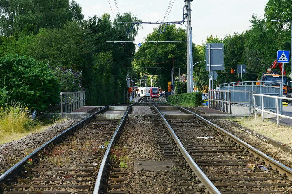 An der Haltestelle Wilhelm-Sollmann-Straße wurden die Gleise Richtung Innenstadt bereits entfernt. (07.07.2014)