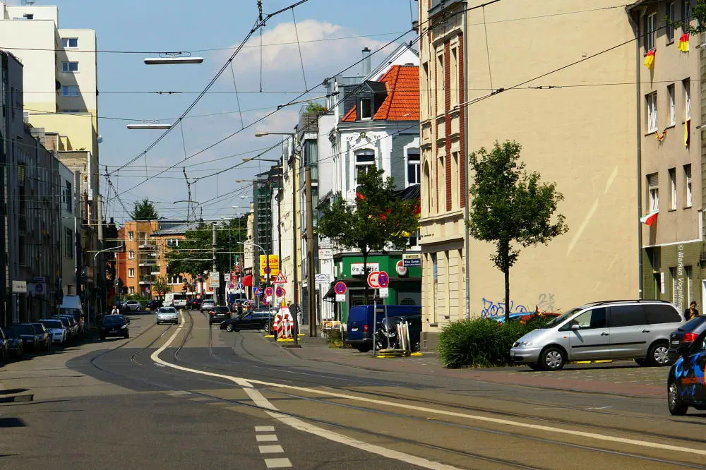 Die Neusser Straße zwischen Scheibenstraße und Wilhelm-Sollmann-Straße am 27.07.2014.