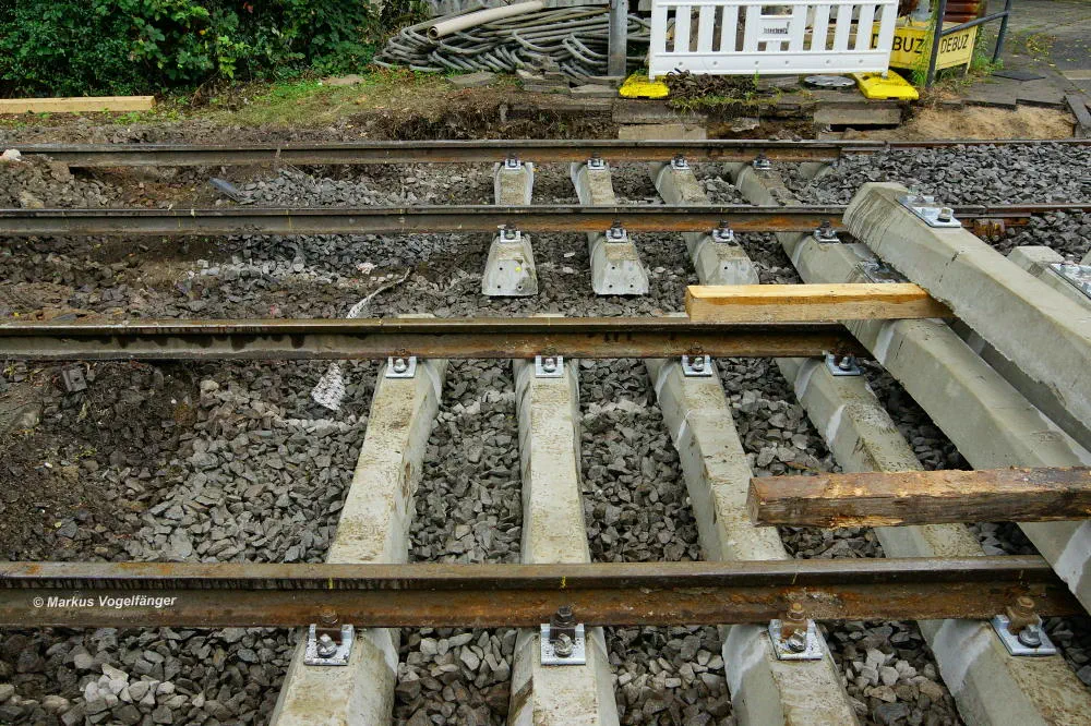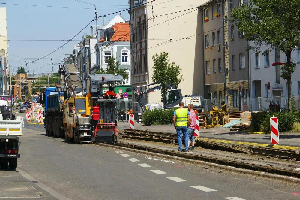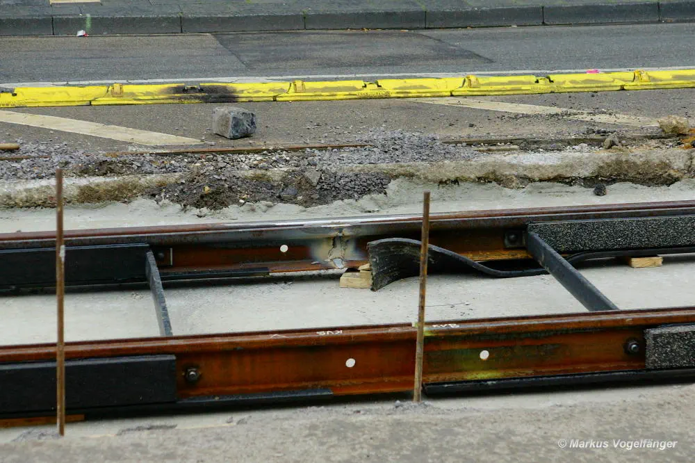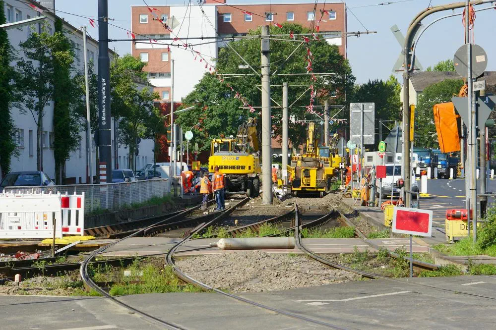 Die zu erneuernden Gleise auf der Wilhelm-Sollmann-Straße am 02.08.2014.