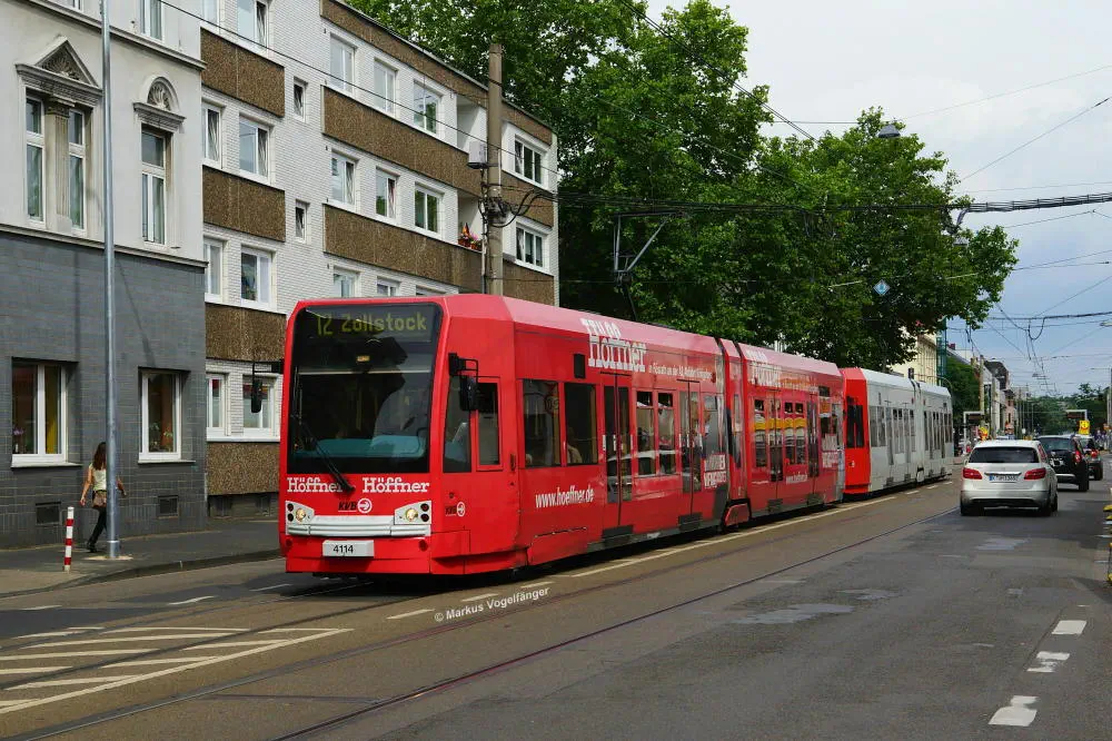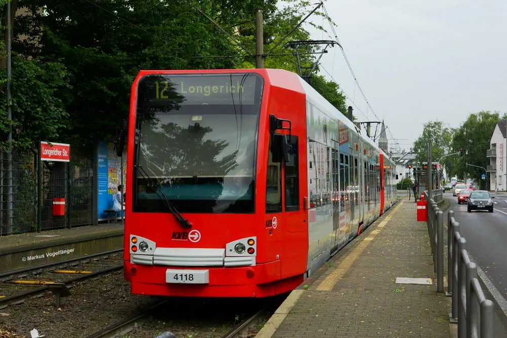 4118 als umgeleitete Linie 12 an der Haltestelle Longericher Straße während Bauphase 1 am 05.07.2014.