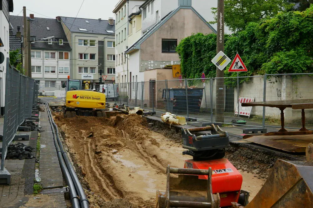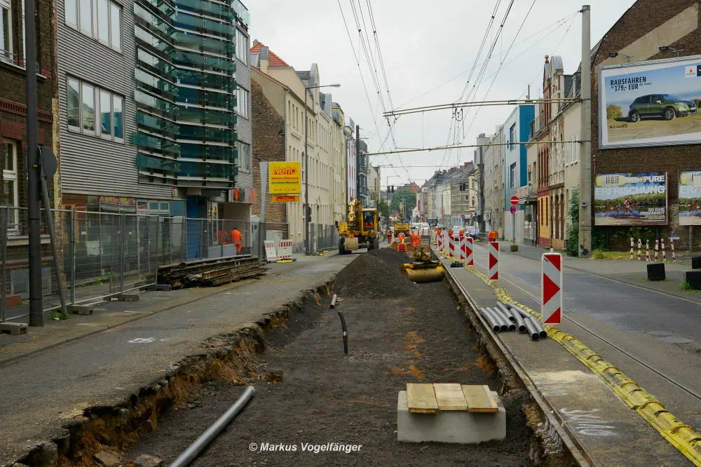Der aktuelle Bauzustand auf der Neusser Straße vor dem Umbau am 02.07.14.