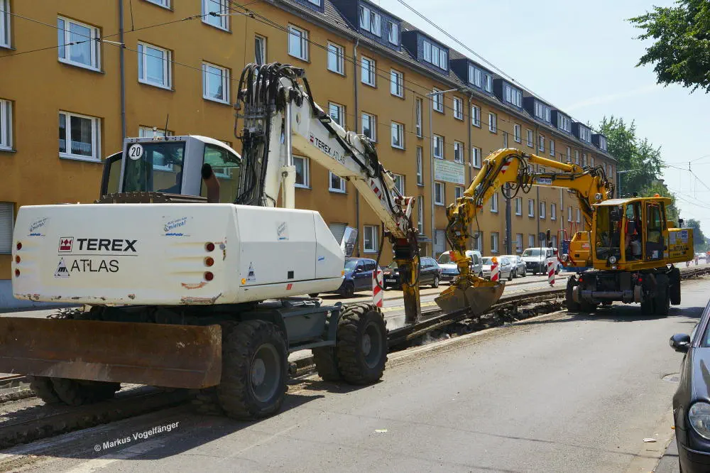 Schienenbagger auf der Neusser Straße am 13.07.2014.