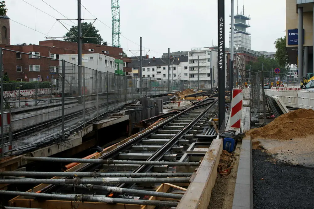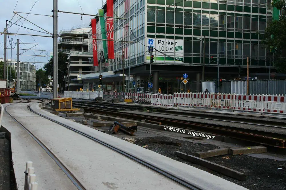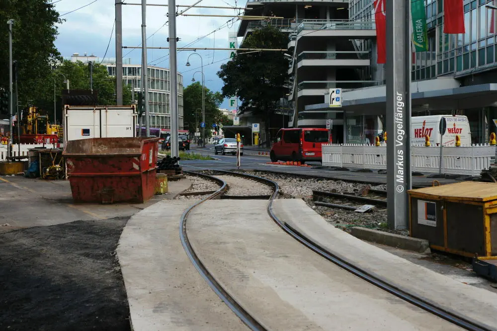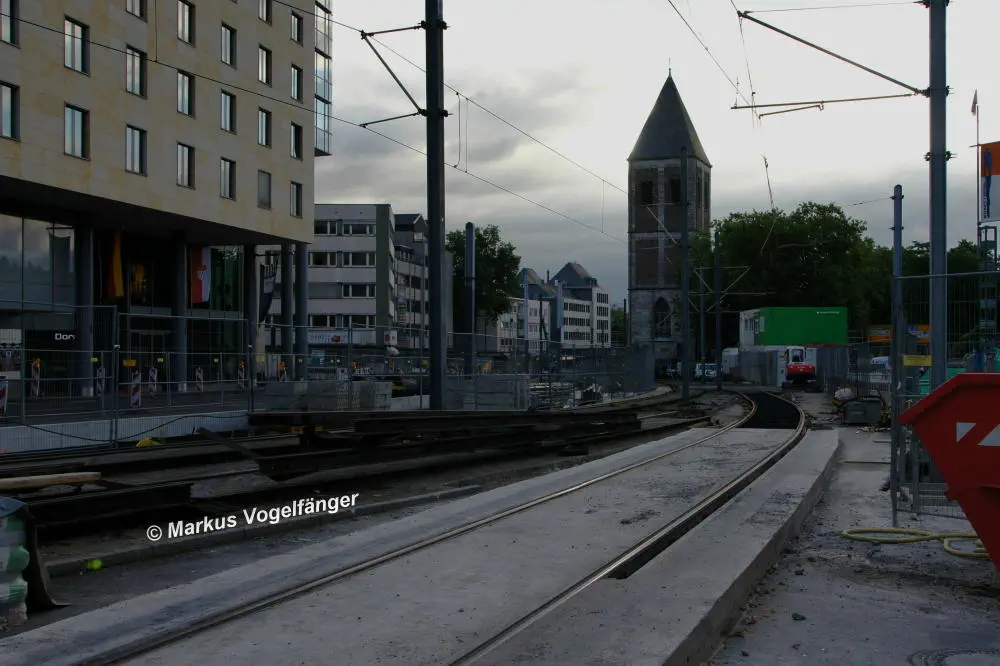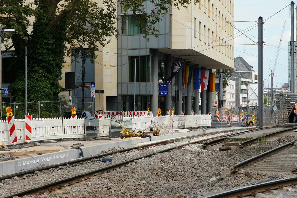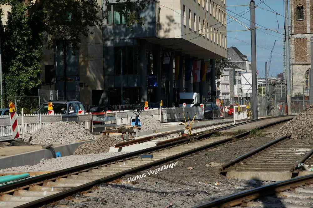 Rechts das neue Streckengleis Richtung Neumarkt von der Haltestelle heumarkt aus gesehen am 13.08.2012