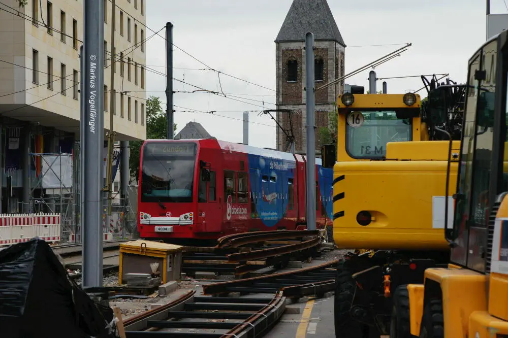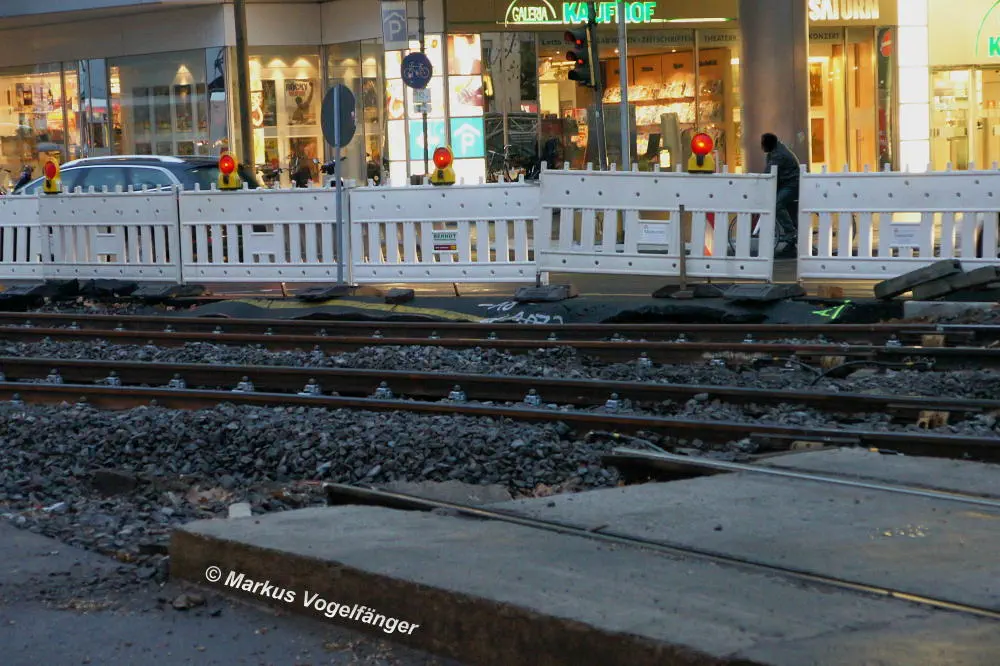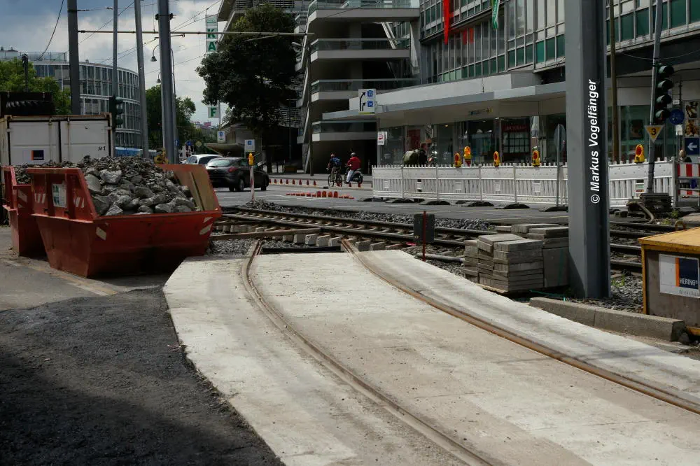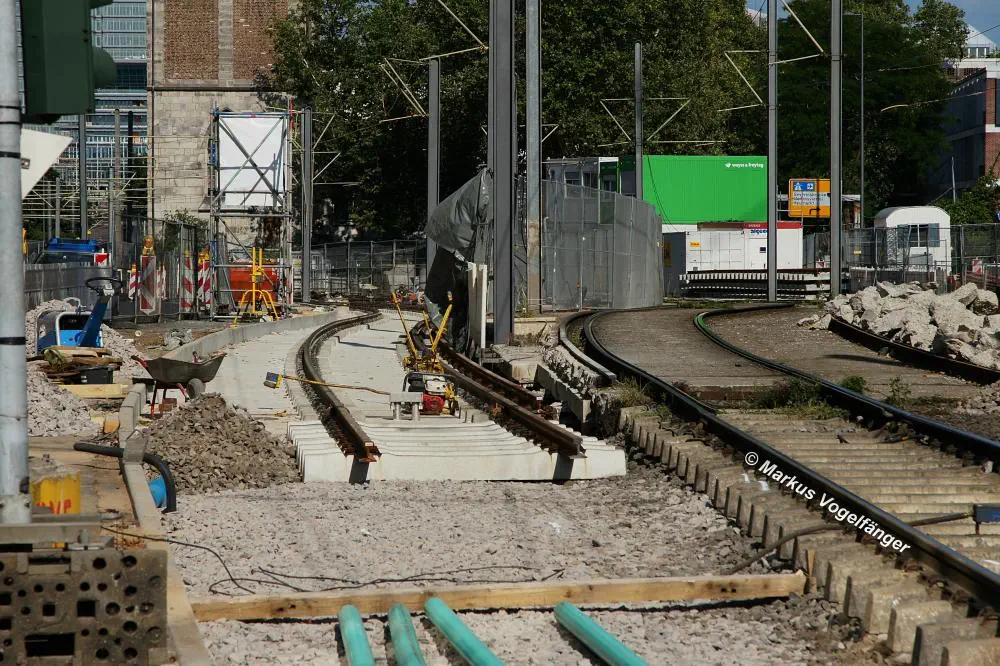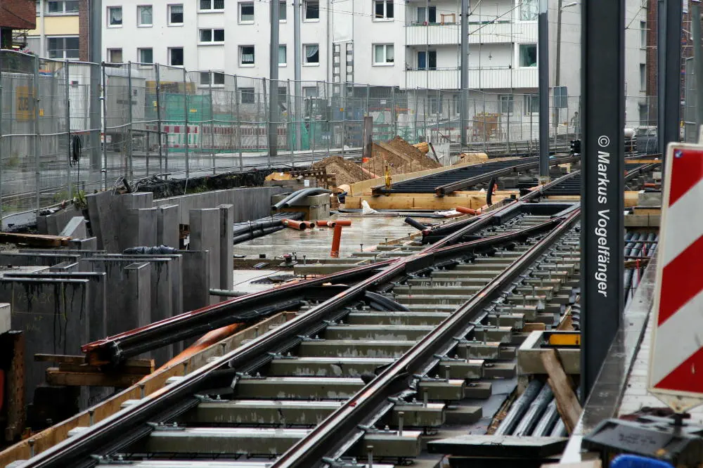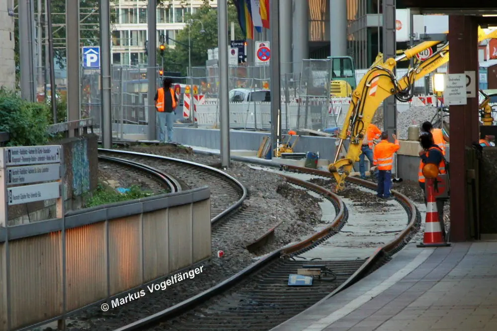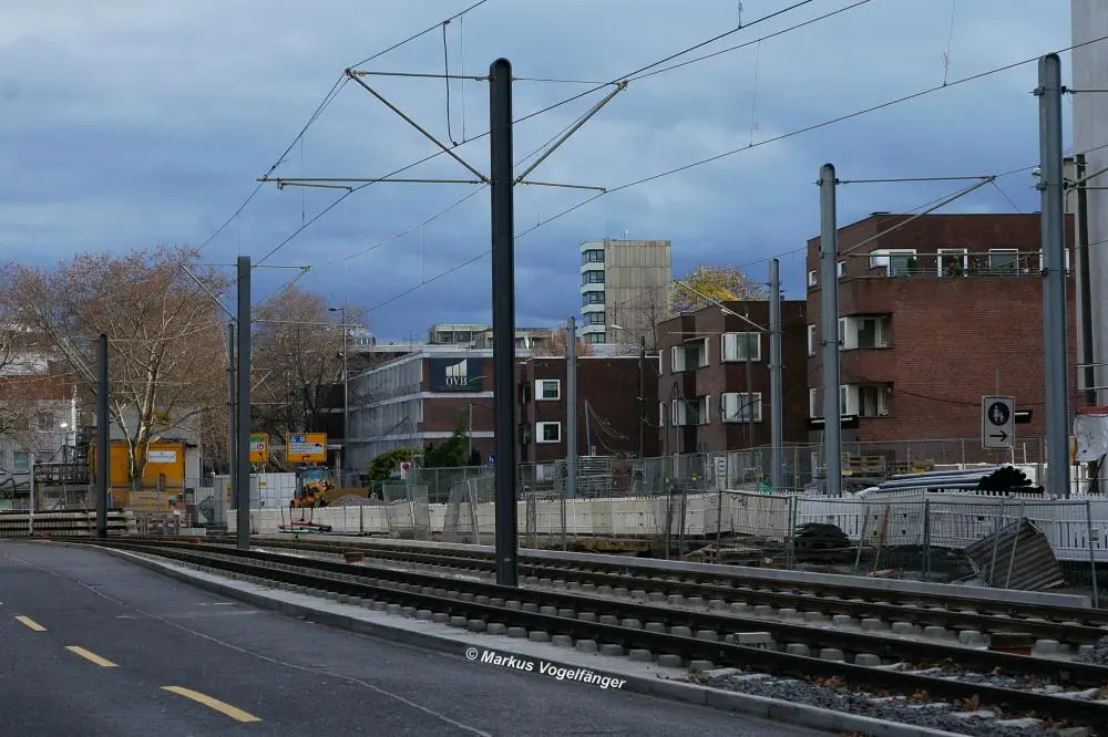 Rechts das neue Streckengleis Richtung Neumarkt von der Haltestelle heumarkt aus gesehen am 13.08.2012