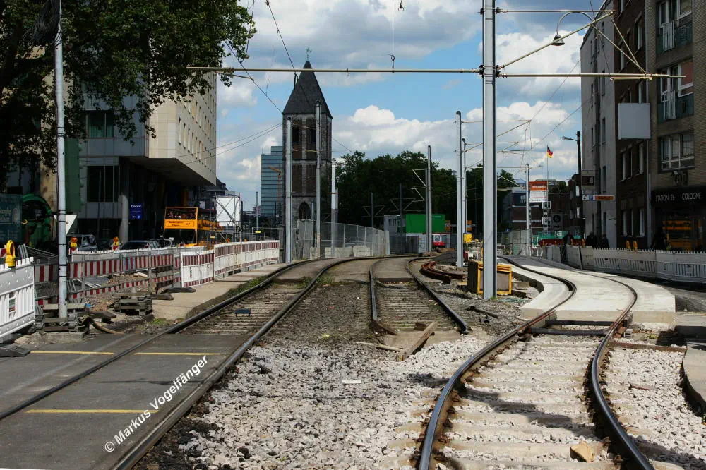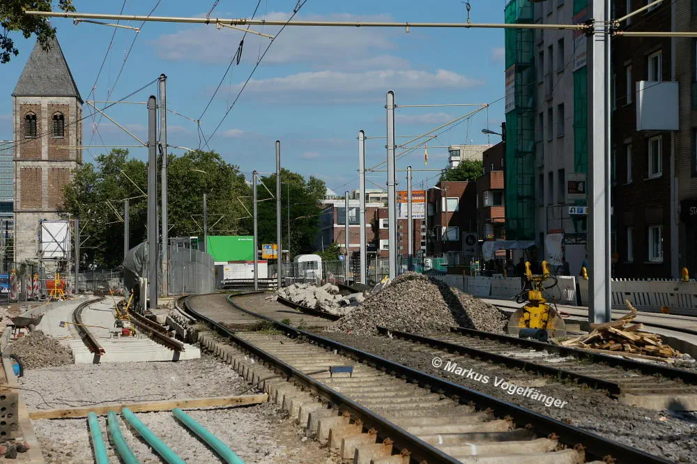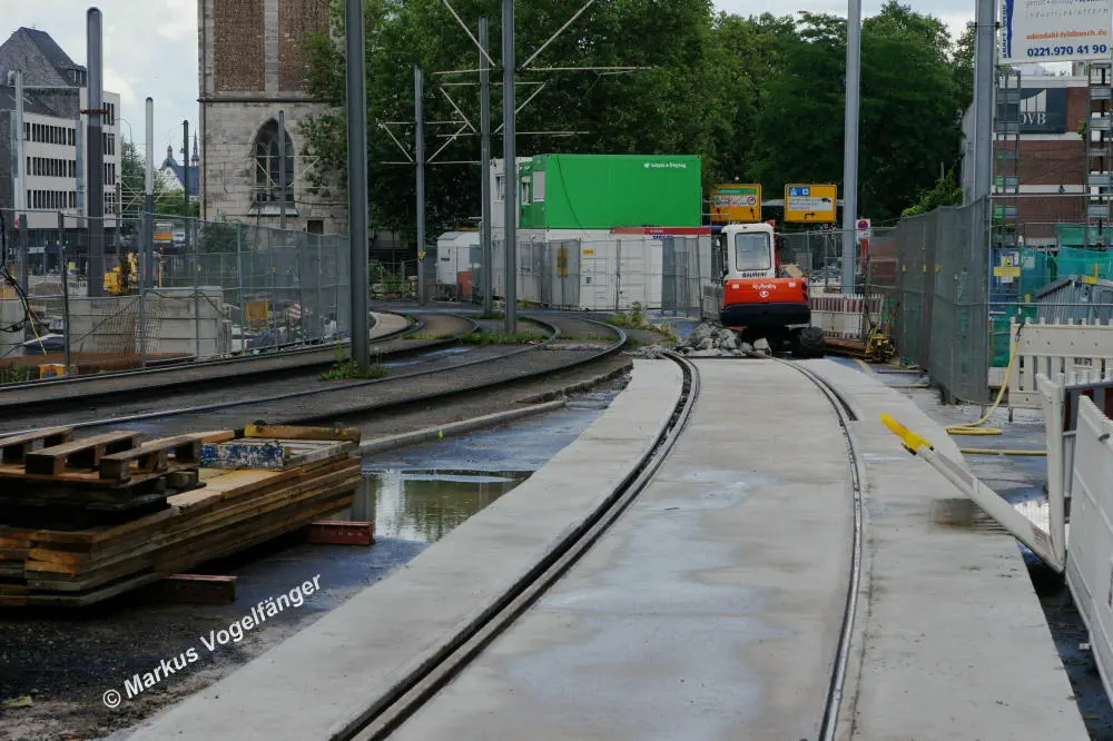 die zukünftigen Streckengleise Richtung Neumarkt (rechts) und Richtung Deutz (im Hintergrund links) am 28.07.2012.