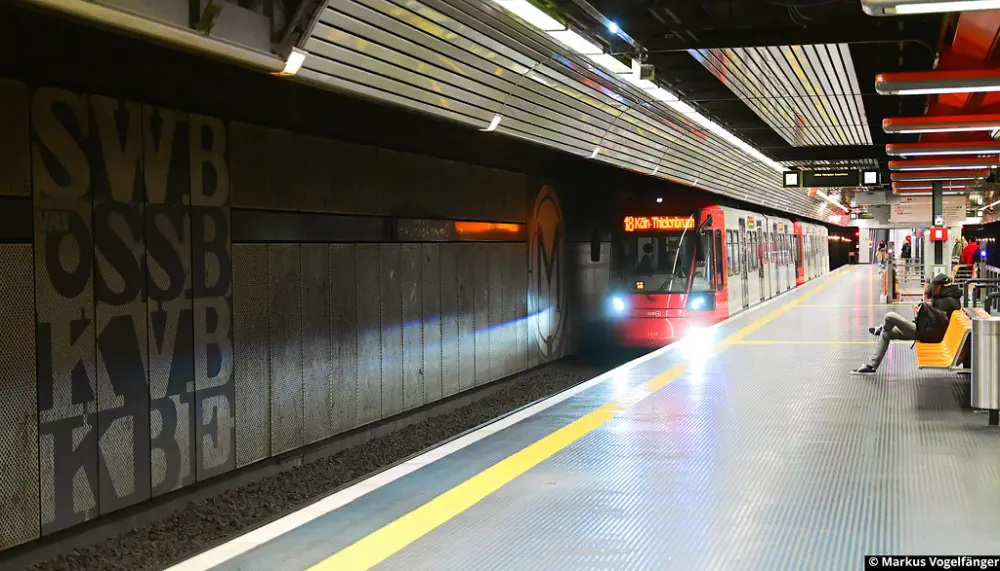 4010 wurde erneut in die aktuellen KVB-Farben lackiert. Hier an der Haltestelle Deutz Technische Hochschule am 07.03.2024.