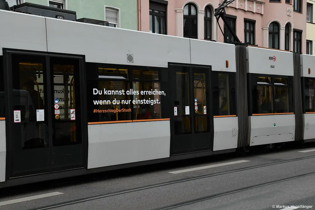 Im September 2022 begann die KVB mit einer Werbekampagne, in der auf 50 Fahrzeugen jeweils 4 von 9 verschiedenen Werbesprüchen auf verschiedenen Fahrzeugen der Serie 4000, 4500 und 5100 angebracht wurden. Auf dieser Seite befindet sich je ein Bild, sowie die entsprechenden Wagen, die den entsprechenden Werbespruch erhielten.